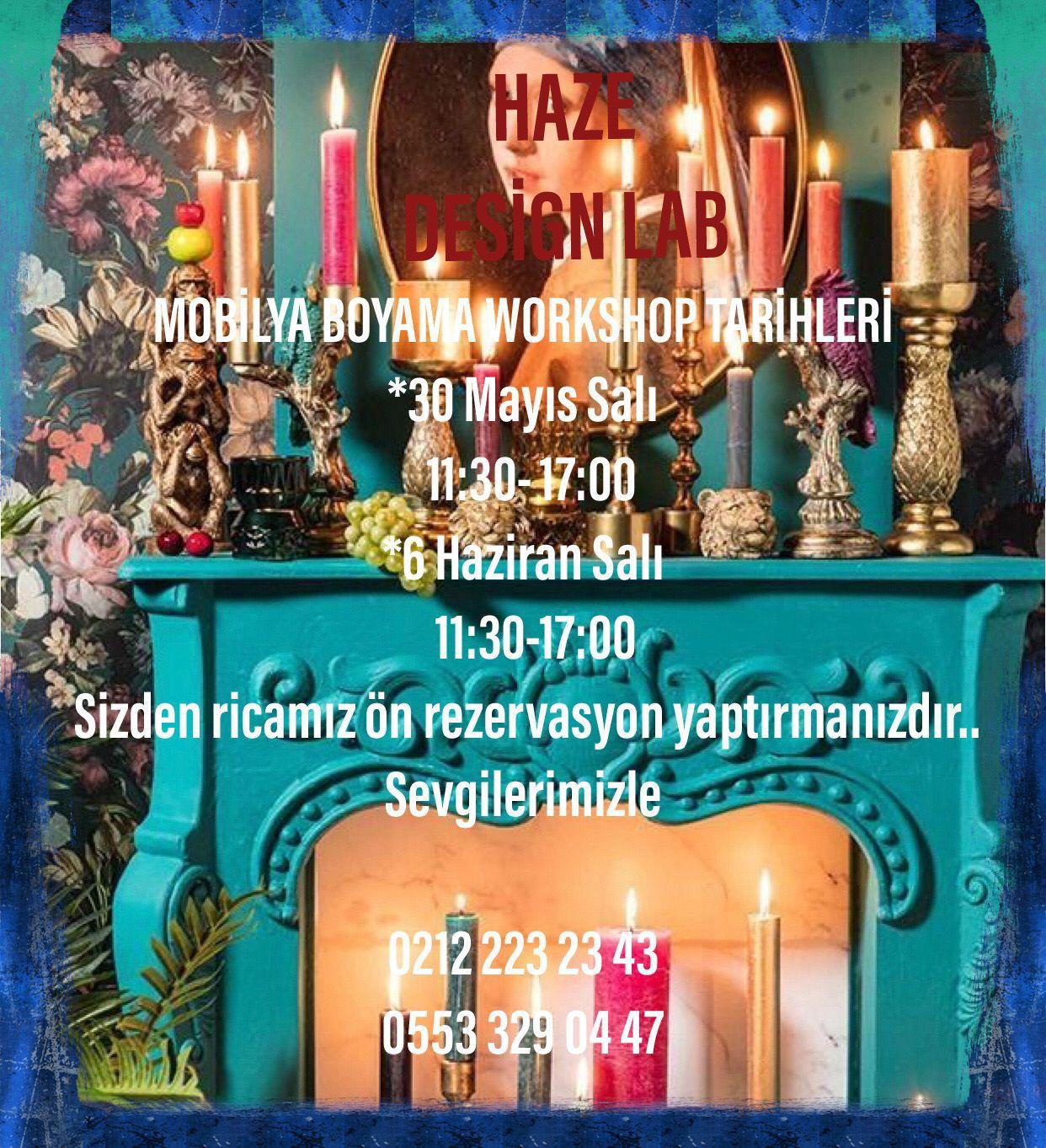 | Haziran 2019 | 15-22-29 Haziran | 11:00 - 17:30 | Mobilya Boyama Teknikleri | Tamamlandı | ||