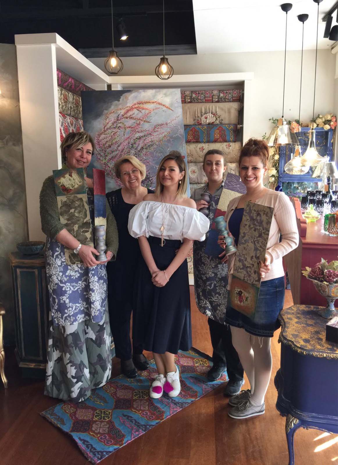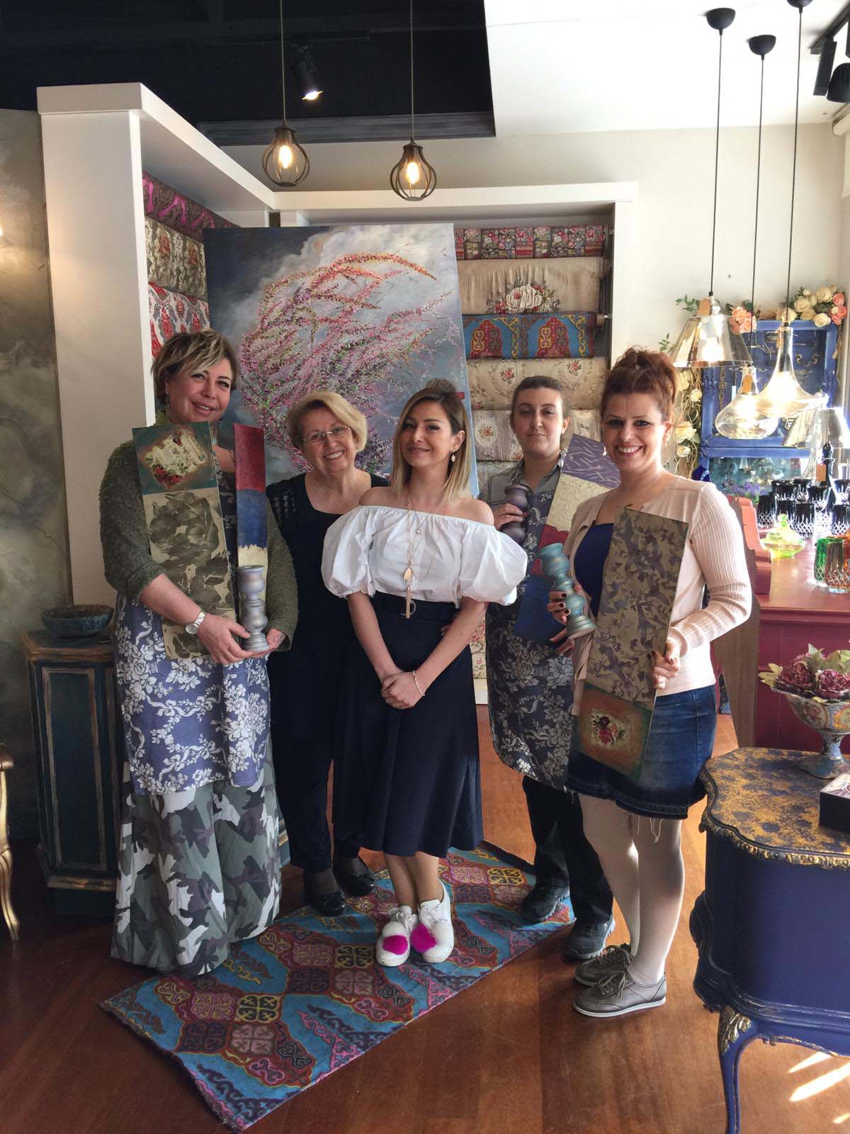 Daha çok mobilya süslemeye yönelik bir eğitimdir. Temel Teknikler workshopuna katılmış olanların tercih etmesi önerilir. Boyası tamamlanmış mobilyalara farklı dokunuşlar katmak için yöntemler aktarılmaktadır:
