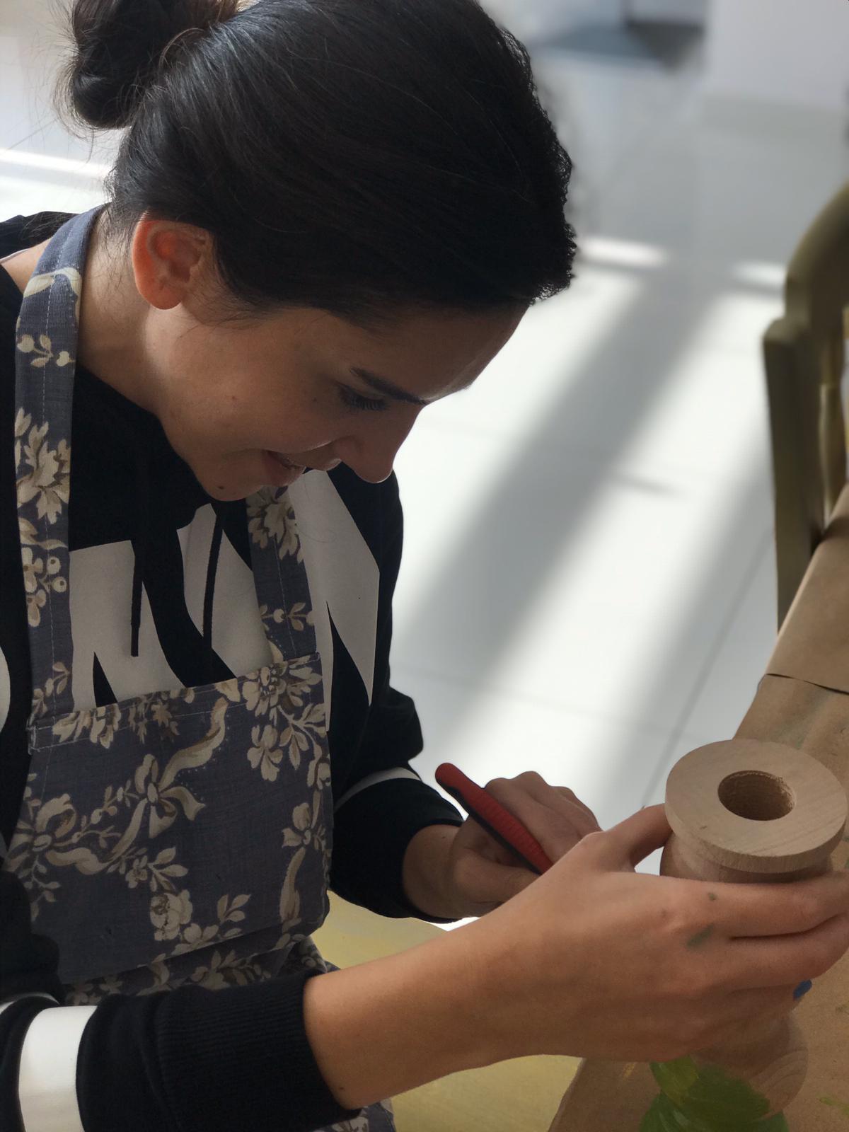 Kurs sonunda ahşap bir obje ile serbest çalışma yapılmaktadır.